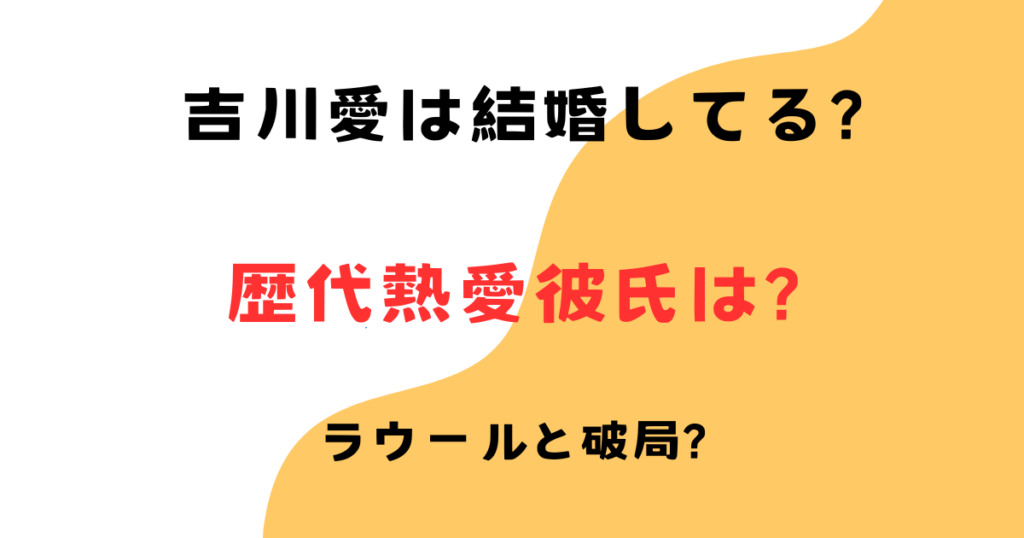 子役時代から様々な作品に出演しており、演技力に評価の高い吉川愛さん。 そんな吉川愛さんは「結婚してる?」等と噂になっているようです。 ラウールさんとの破局についても噂になっているとのことですが、本当でしょうか? そこで、今回はこちらについて... -