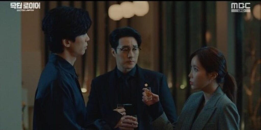 弁護士デビューしたハン・イハンが、法廷でまるでアクション映画のような口論劇を繰り広げ、裁判長が止める暇もない(笑)。