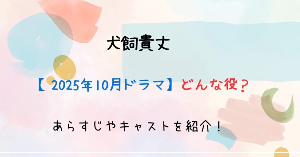 犬飼貴丈【2025年10月ドラマ】どんな役?あらすじやキャストを紹介!