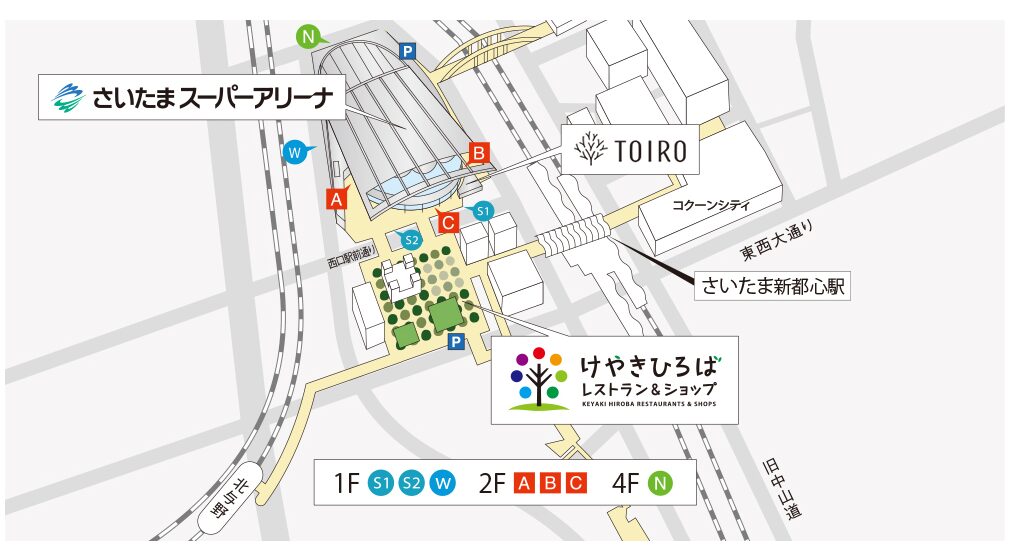 JRさいたま新都心駅から徒歩2~3分、北与野駅からも徒歩7分と、駅を出たらすぐに会場が見えるので、初めて訪れる方でも迷う心配がほとんどありません。