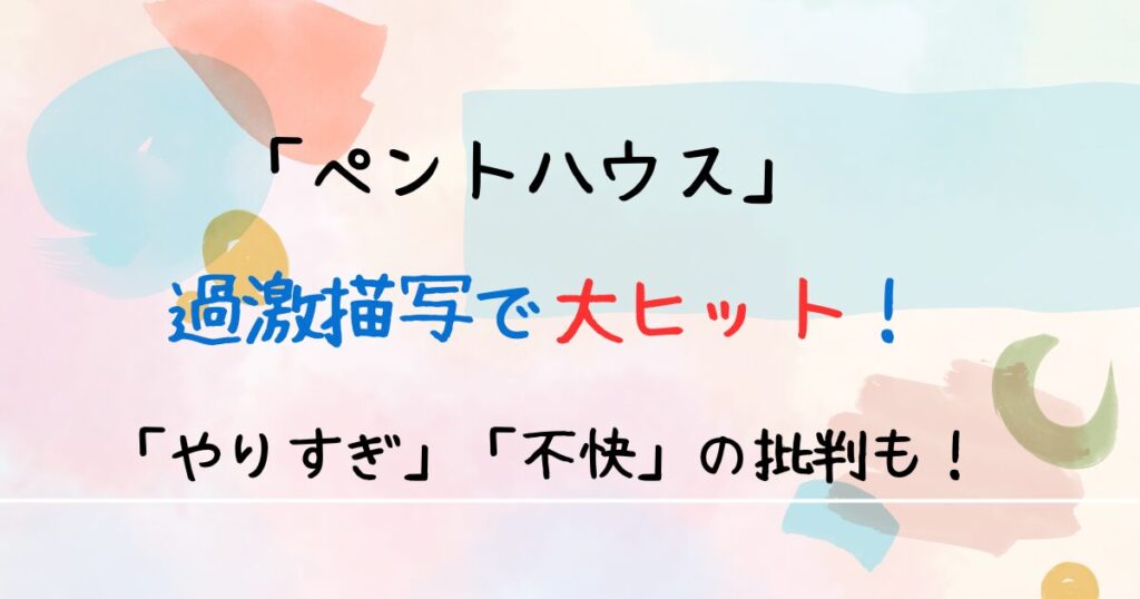 批判と中毒性が紙一重、まさに毒なのに美味しい作品が『ペントハウス』です。