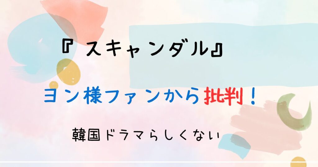 正直『スキャンダル』を初めて観たとき、「これはヨン様ファン泣かせだな」と感じました。