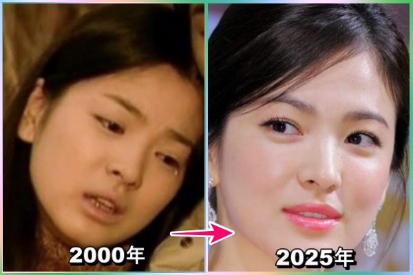 ソン・ヘギョさんの顔の変化は、メイク技術の進化とスタイルの変化が大きく影響しています。