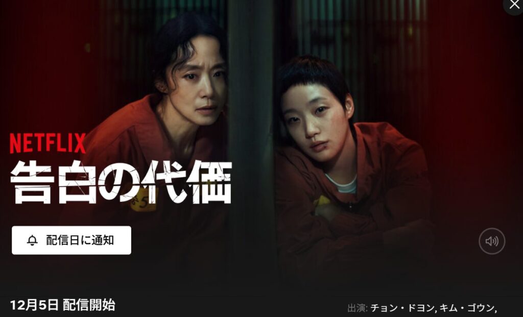 「自白の代価」はタイトルが「告白の代価」に変更となり、12月5日からNetflixで配信予定になっています。